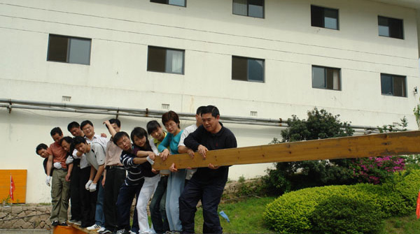 項(xiàng)目特點(diǎn):請(qǐng)兩個(gè)隊(duì)的隊(duì)員全部退到起點(diǎn)線外。請(qǐng)大家利用所給的木板和繩子,在60分鐘內(nèi)到達(dá)對(duì)方的起點(diǎn)線。一個(gè)隊(duì)的全體隊(duì)員按時(shí)到達(dá)為項(xiàng)目成功。