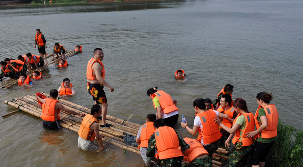 3 注意竹筏上人員分布 上海拓展培訓(xùn)。